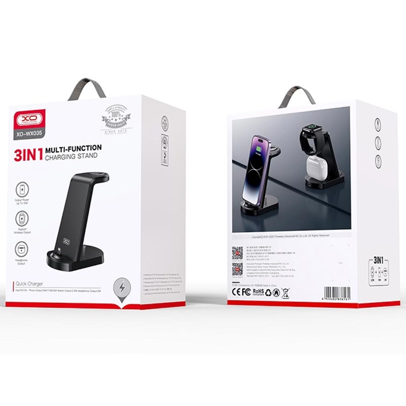 XO WX035 3-i-1 opladningsstander med Lightning-stik 15W - sort
