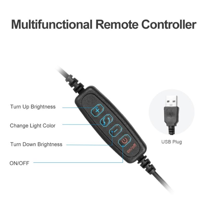 Forvandl ethvert skrivebord eller toiletbord til et mini-studie. Denne 10" USB-ringlampe oversvømmer din scene med blød, flimmerfri belysning og tilbyder tre farvetemperaturer (3000 K varm, 4500 K neutral, 6500 K kølig) og trinløs dæmpning for at matche dagslys, aftenstemning eller RGB-gaming-rigge. Med et 360° kuglehoved kan du vippe og dreje lyset for at få et perfekt catch-light, mens det udfoldelige metalstativ gør det stabilt ved siden af bærbare computere, spejle eller arbejdsbænke. Sættet drives af en hvilken som helst 5 V USB-port og er parret med en Bluetooth-lukker, så det er klar til liveundervisning, TikTok-klip, Zoom-opkald og produktoptagelser lige ud af æsken.