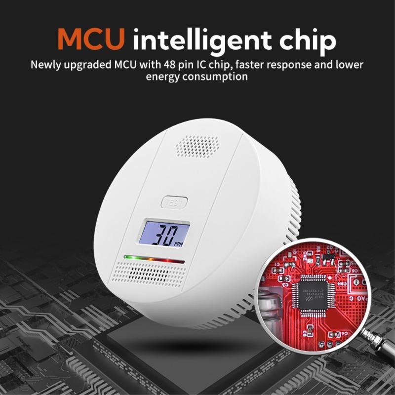 24-timers overvågning med LCD-display: Det indbyggede LCD-display viser CO-niveauer i realtid, så du kan overvåge sikkerheden i dine omgivelser. Alarmen har et bredt detekteringsområde fra 0 til 999 PPM, hvilket giver omfattende dækning.
