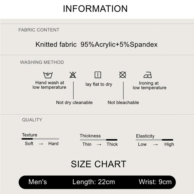 Lavet af 95 % akryl + 5 % spandex, blødt, behageligt og åndbart, holder dine hænder varme i koldt vejr