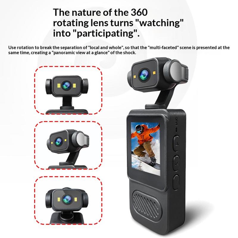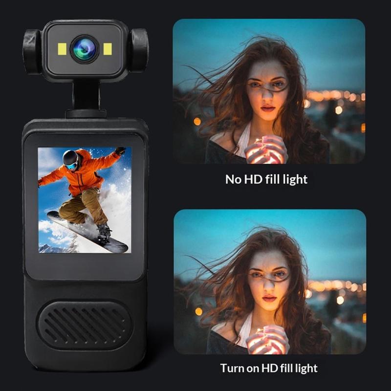 Dette mini-actionkamera er designet til aktiv brug og har et 2K-kameramodul og en kvalitetssensor, der hjælper med at optage klare og levende videoer i et bærbart format. De dobbelte LED-lys forbedrer synligheden i dårlige lysforhold, mens den indbyggede bevægelsesstabilisering hjælper med at reducere rystelser under cykling, løb og andre dynamiske aktiviteter. Dette gør det til en nyttig ledsager for brugere, der ønsker enkel optagelse og hurtig adgang til optagelser, når de er udendørs.