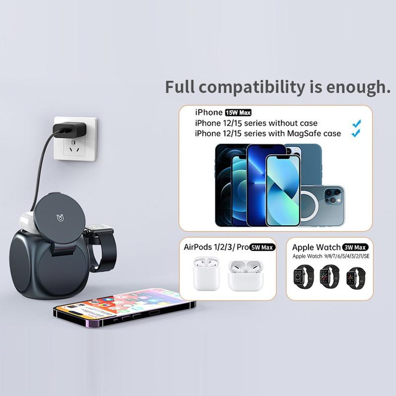 - Bred enhedskompatibilitet - Kompatibel med Apple Watch Series 1-10, AirPods med trådløst opladningsetui og alle Qi-aktiverede smartphones, herunder iPhone og udvalgte Android-modeller.