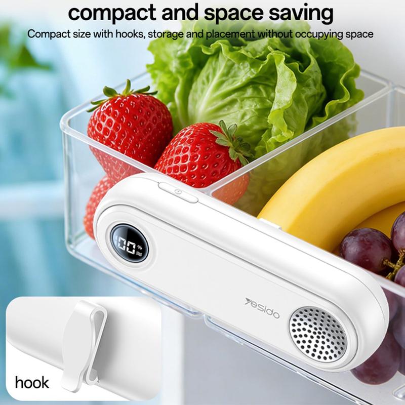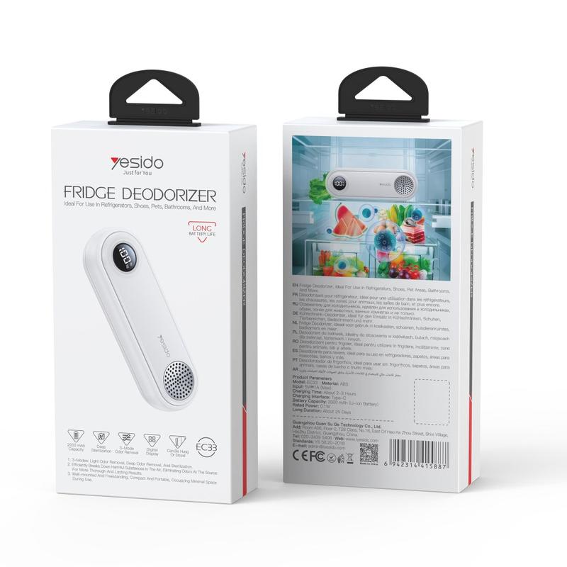 Yesido EC33 multifunktionel køleskabsdeodorant - genopladelig lugtfjerner og sterilisator med digitalt display, 3 indstillinger, USB-C-opladning