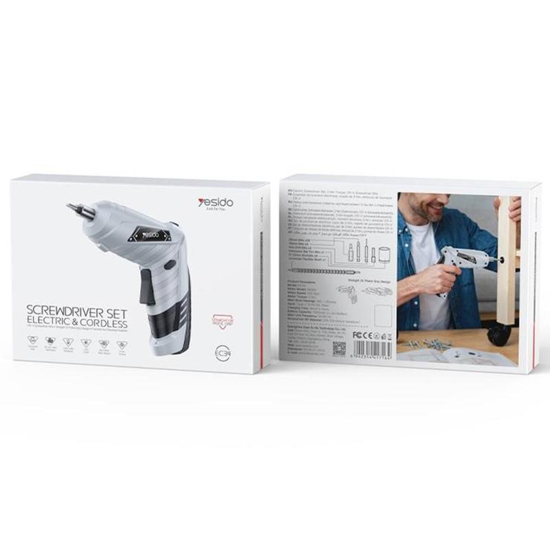 Yesido EC34 sæt med trådløs elektrisk skruetrækker - multifunktionelt reparationsværktøj i både lige og pistolform med LED-lys