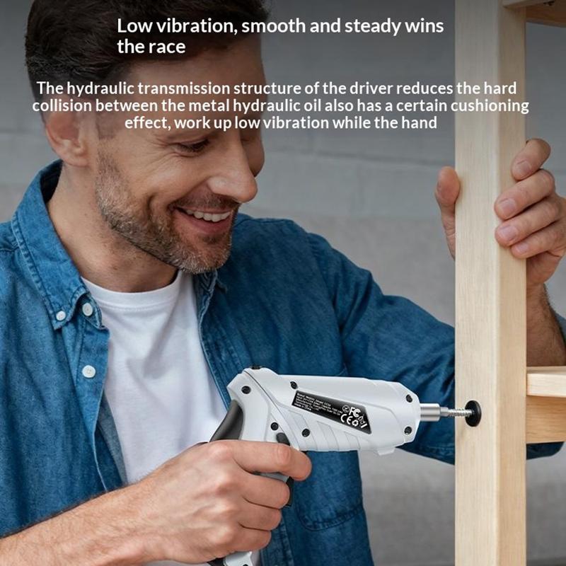 Skruetrækkeren drives af en højtydende motor og leverer et drejningsmoment på op til 3 Nm og 400 omdrejninger i minuttet for effektiv fastgørelse og løsning af skruer. Den indbyggede LED-lampe forbedrer synligheden, når du arbejder i mørke hjørner eller trange rum, mens fremad- og bagudkontrollen gør betjening med én hånd mere praktisk. Den medfølgende fleksible skaft hjælper dig også med at nå vanskelige vinkler, hvor en standard skruetrækker ikke kan arbejde så let.