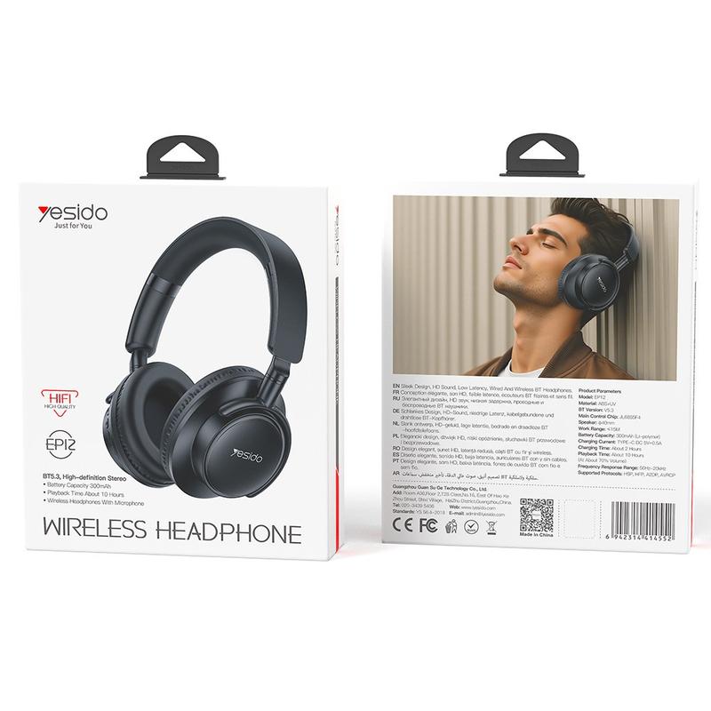 Yesido EP12 Over-Ear Bluetooth-hovedtelefoner - komfort uden tryk, dobbelt kablet/trådløs tilstand, understøttelse af stemmeassistent