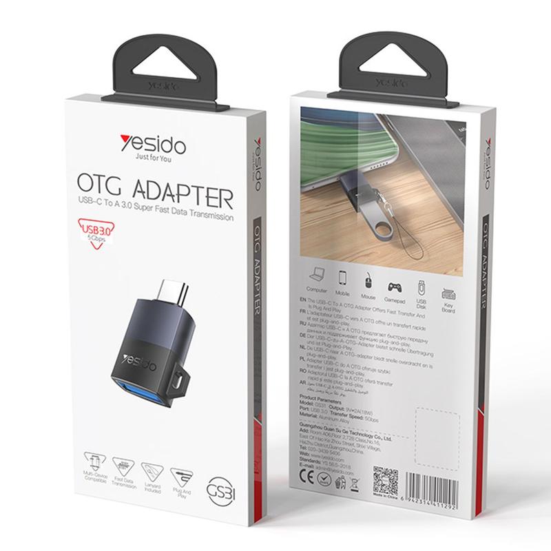 Yesido GS31 USB 3.0 til USB-C OTG-adapter - 18W hurtigopladende omformer i aluminiumslegering