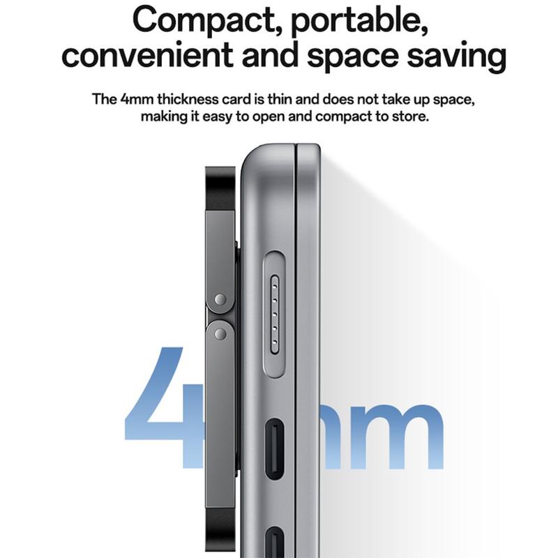 Det lette design er kun 4 mm tykt, hvilket gør det ideelt til professionelle, studerende og rejsende, der har brug for et bærbart laptopstativ, der forbliver fastgjort uden at fylde for meget. To justerbare højdepositioner giver dig mulighed for at vælge den mest behagelige arbejdsvinkel, uanset om du skriver, ser indhold eller arbejder i længere perioder.