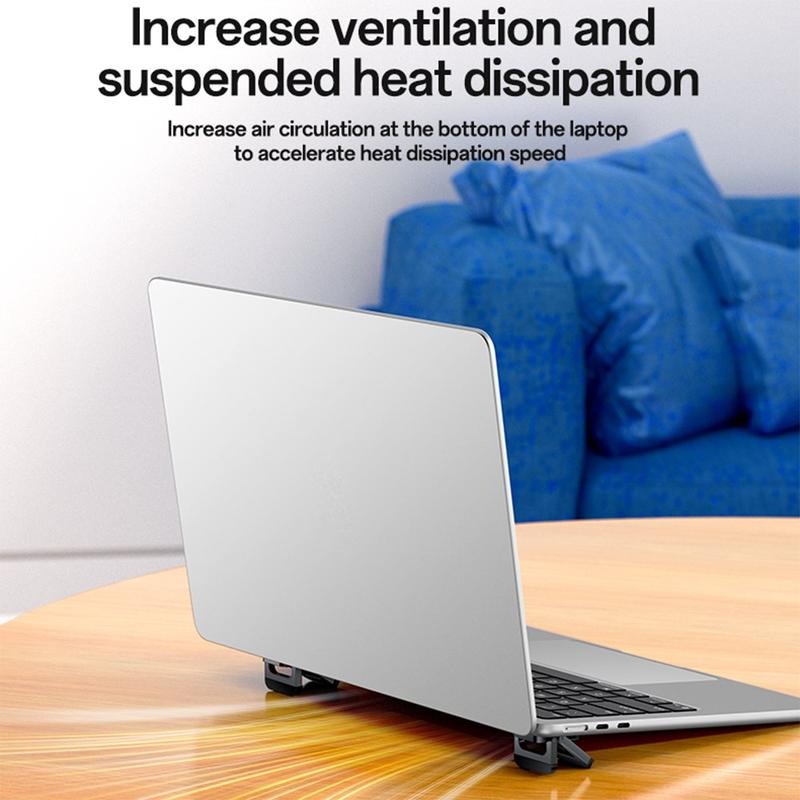 Få bedre komfort og luftcirkulation, når du arbejder, med YESIDO LP11-stativsættet til bærbare computere. Disse ultratynde stativer er designet som et kompakt sæt sammenklappelige understøtninger, der fastgøres til undersiden af din bærbare computer og hurtigt kan foldes ud til en stabil trekantet understøtning. Ved at hæve enheden en smule bidrager de til bedre luftcirkulation under den bærbare computer, samtidig med at de forbedrer betragtningsvinklen, hvilket giver en mere behagelig skriveoplevelse og skærmplacering.