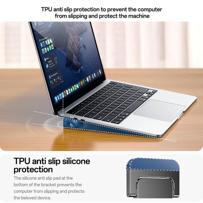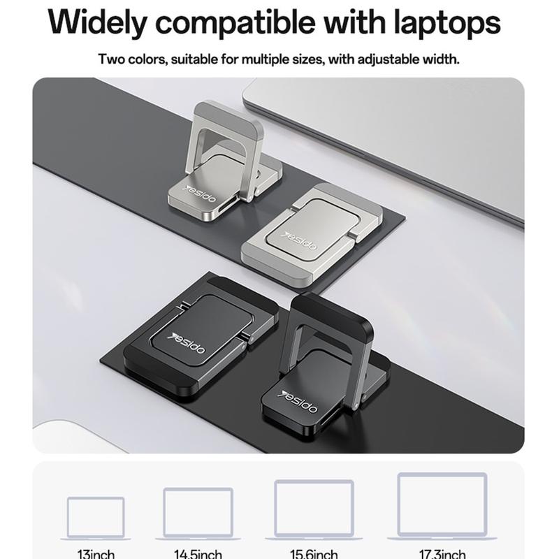 Få bedre komfort og luftcirkulation, når du arbejder, med YESIDO LP11-stativsættet til bærbare computere. Disse ultratynde stativer er designet som et kompakt sæt sammenklappelige understøtninger, der fastgøres til undersiden af din bærbare computer og hurtigt kan foldes ud til en stabil trekantet understøtning. Ved at hæve enheden en smule bidrager de til bedre luftcirkulation under den bærbare computer, samtidig med at de forbedrer betragtningsvinklen, hvilket giver en mere behagelig skriveoplevelse og skærmplacering.