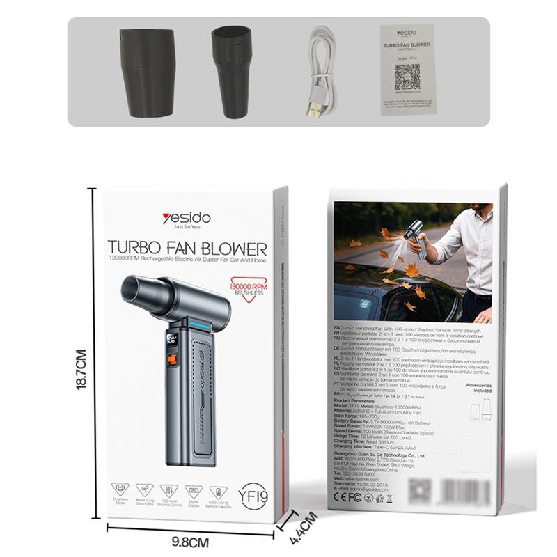 Yesido YF19 Håndholdt ventilator/støvblæser - 130000 RPM trådløs luftblæser/ventilator/støvsuger med høj hastighed
