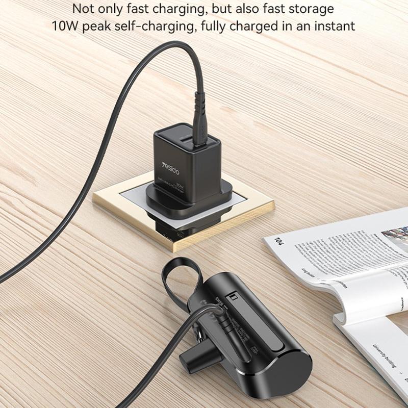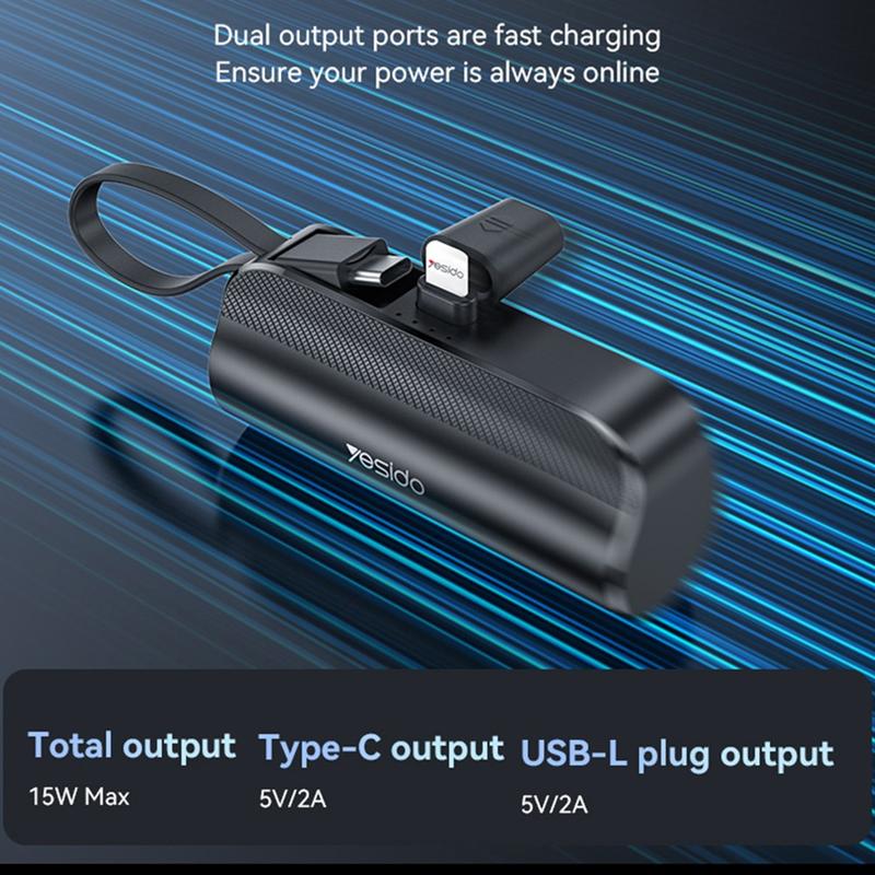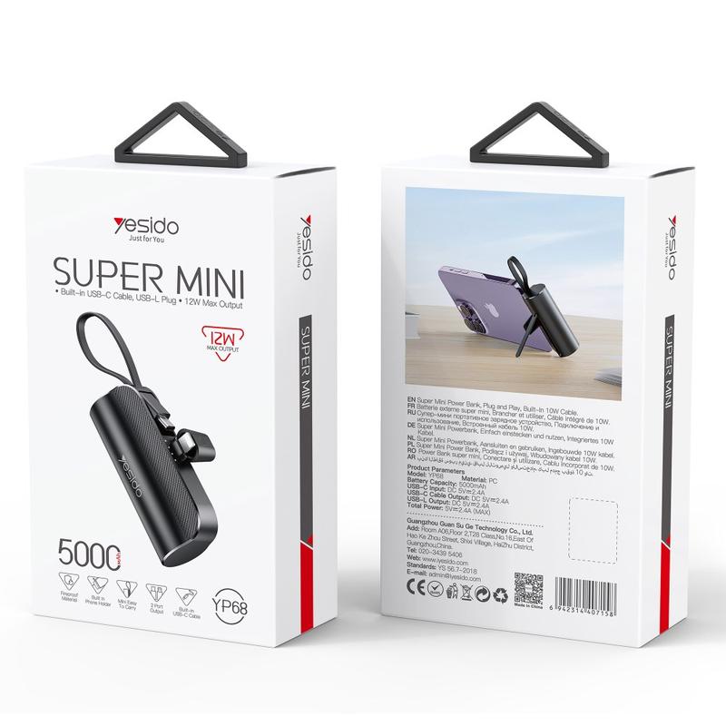 Yesido YP68 5000mAh Lightning Power Bank med USB-C-kabel og skjult stander