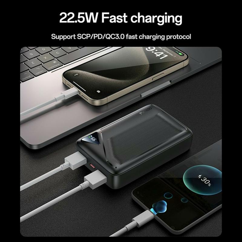 YESIDO YP82 Power Bank er kompakt, men kraftfuld og designet til at holde dine enheder opladet, uanset hvor livet fører dig hen. Med en kapacitet på 10000mAh og 22.5W hurtigopladningsteknologi giver den effektivt strøm til smartphones, tablets og andre USB-kompatible enheder. Det klare digitale display giver batteristatus i realtid, mens det intelligente sikkerhedssystem sikrer optimal ydeevne uden overophedning. Den er let og bærbar og er den ideelle følgesvend til rejser, arbejde og en livsstil på farten.