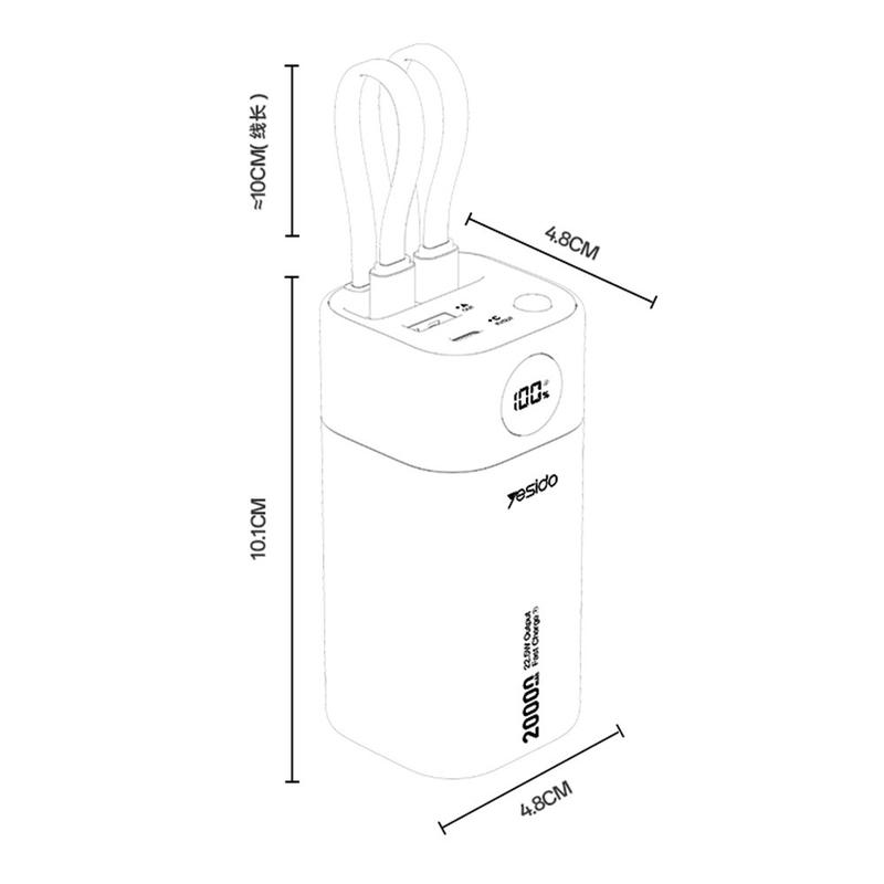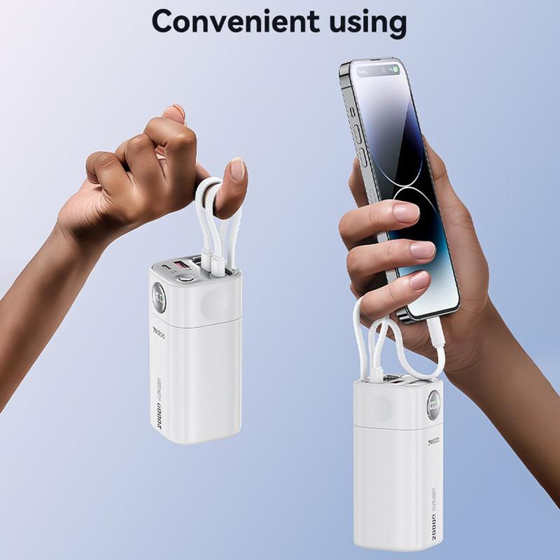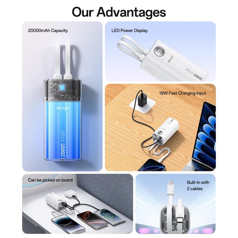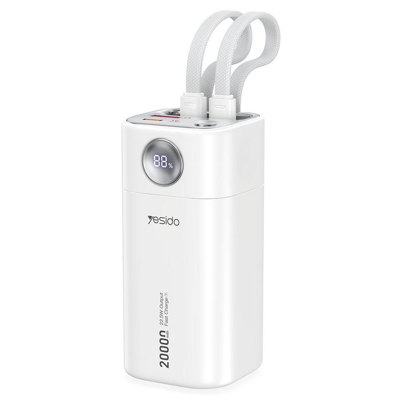 Yesido YP86 20000mAh hurtigopladende powerbank - 22.5W, digitalt display og indbyggede USB-C / Lightning-kabler