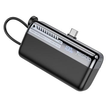 Yesido YP99 10000mAh powerbank med 22,5 W hurtigopladning, indbygget USB-C til Lightning-kabel og digitalt display