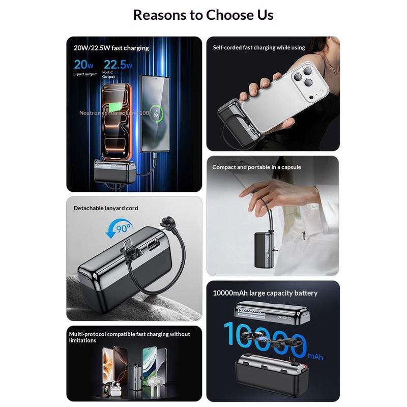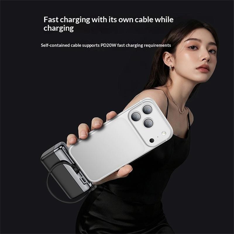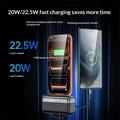 Denne powerbank understøtter flere hurtigopladningsprotokoller, herunder PD, QC, AFC, SCP og FCP, hvilket gør, at den fungerer effektivt med en bred vifte af enheder. Den leverer op til 22,5 W udgang via USB-C og op til 20 W via USB-L, hvilket gør den velegnet til hurtig opladning af kompatible telefoner, tilbehør og anden bærbar elektronik. Hurtigopladning kan være særligt nyttigt, når du har brug for en hurtig opladning på travle dage eller mens du er på farten.