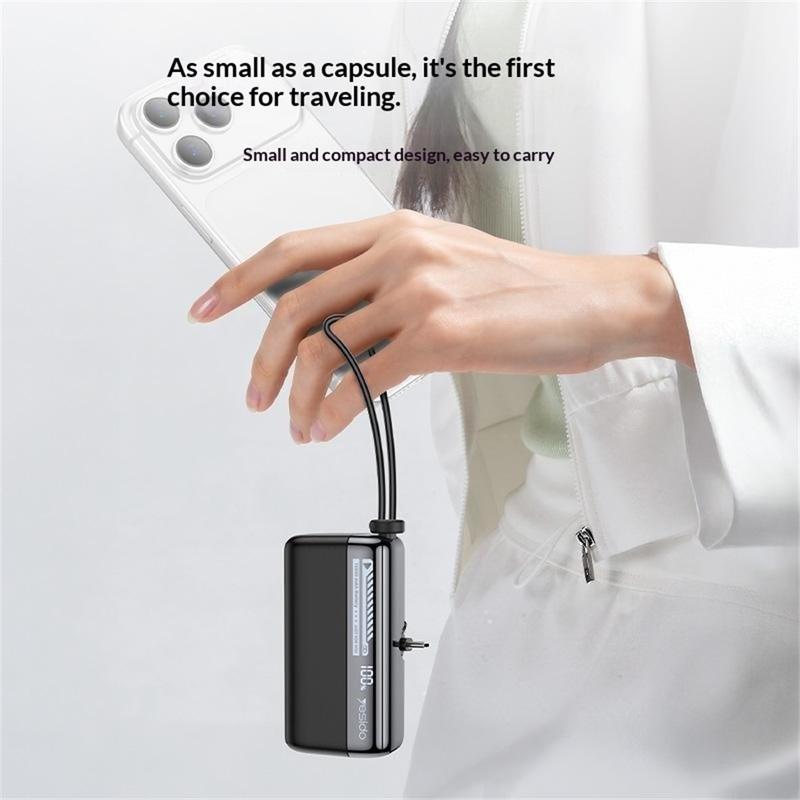 YESIDO YP99 Power Bank er en praktisk, bærbar oplader, der er designet til hurtig og bekvem opladning derhjemme, på arbejdet eller på rejsen. Med en batterikapacitet på 10000mAh, et kompakt design i kapselform og et indbygget USB-C-til-Lightning-kabel tilbyder den en enkel alt-i-én-opladningsløsning til moderne smartphones og andre kompatible enheder. Den bærbare størrelse gør den nem at have med i en taske, lomme eller i det daglige rejseudstyr.
