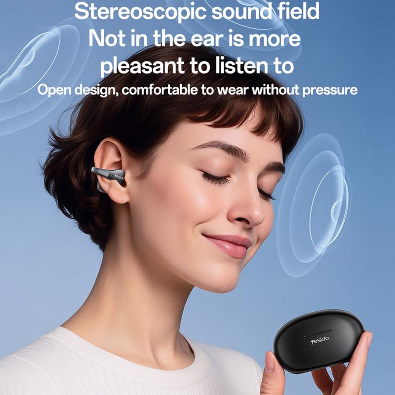 Oplev virkelig åben lytning uden at gå på kompromis med lydkvaliteten. YESIDO YSP27-headsettet med øreklips kombinerer en titanmembran-driver med Environmental Noise Cancellation for at levere rummelig HiFi-lyd, mens du holder ørerne fri og er opmærksom på dine omgivelser. Den fjerlette konstruktion og den fleksible hukommelseskrog holder headsettet sikkert på plads under møder, løbeture og alt derimellem.