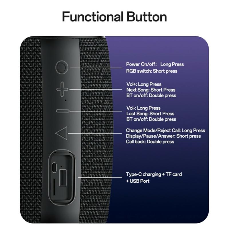- Flere afspilningstilstande: Understøtter Bluetooth 5.3, TF-kort, USB, AUX og TWS for alsidige tilslutningsmuligheder.