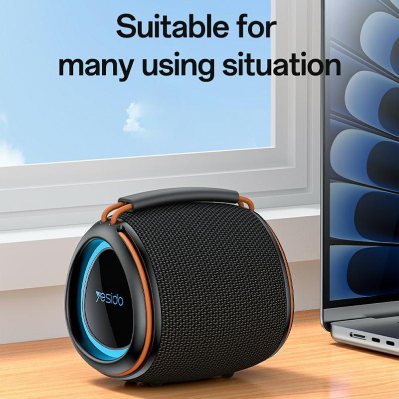 YESIDO YSW40 er ideel til alle, der ønsker bærbar lyd med ekstra flair. Dens kompakte størrelse gør den nem at have med, og med TWS-funktionen kan du parre to højttalere for at få en forstærket stereoeffekt. RGB-lysene giver en festlig stemning, som gør den lige så velegnet til hjemmebrug som til udendørs sammenkomster.