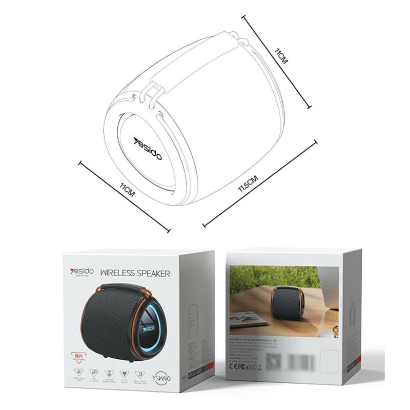 Tag kraftfuld lyd og stil med overalt med den bærbare Bluetooth-højttaler YESIDO YSW40. Denne kompakte højttaler leverer 8W imponerende lyd og er udstyret med flere afspilningsmuligheder, herunder Bluetooth 5.3, TF-kort, FM-radio, USB, AUX og TWS-parring for stereolyd. Den levende RGB-belysning forbedrer din musikoplevelse med en dynamisk visuel effekt, mens batteriet på 1200 mAh sikrer op til 4 timers spilletid på en enkelt opladning. Den er let og alsidig og er den perfekte bærbare ledsager til fester, udendørs aktiviteter eller daglig lytning.