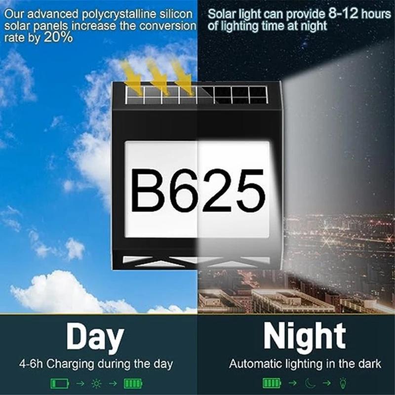 YH1101 suger dagslyset til sig gennem et højeffektivt 4 V/0,6 W polysiliciumpanel og lagrer det i et 500 mAh batteri. I skumringen tænder otte SMD 2835-lysdioder (≈ 40 lm) automatisk og oplyser de medfølgende cifre (0-9) og bogstaver (A-E) i op til 12 timer. Børstet rustfrit stål modstår rust og saltsprøjt fra kysten, mens IP54-forseglingen modstår støv og regn - perfekt til Europas varierede klimaer.
