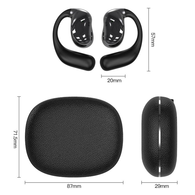 - Design med åbne ører: Forbedrer komforten og opmærksomheden, perfekt til udendørs aktiviteter eller multitasking.