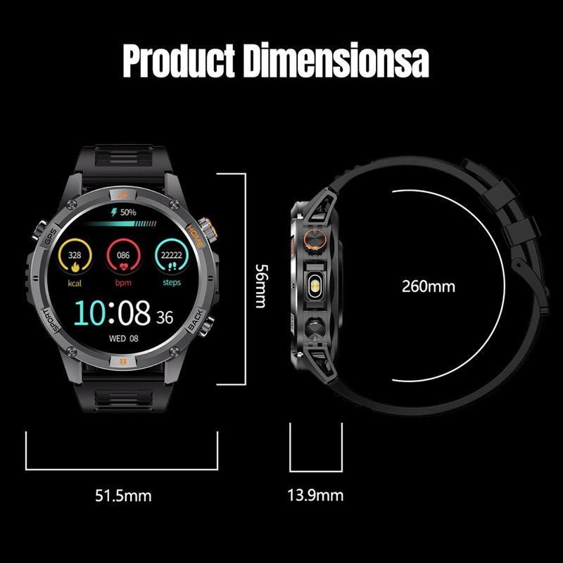 YK15 1,46" HD Smart Watch - IP68 vandtæt udendørs GPS Fitness Tracker med Bluetooth-opkald