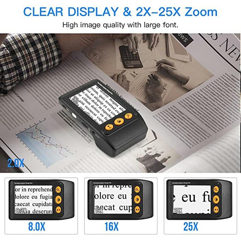 YS008 Bærbar elektronisk lup til synshjælpemidler - 3.5 tommer skærm, 2X-25X digital zoom