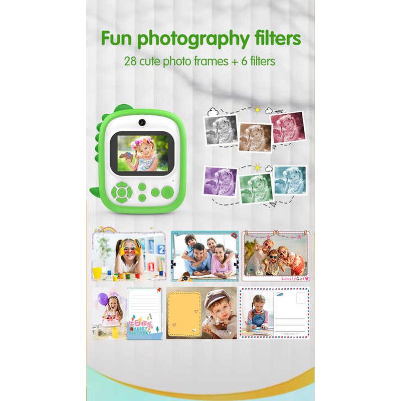 YYTech P3 T-Rex Børnekamera med øjeblikkelig udskrivning - grøn