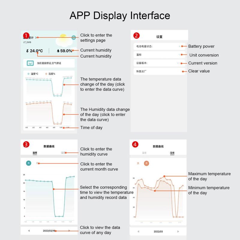 Den har Bluetooth-funktion til at forbinde APP, så du kan se fugt- og temperaturtilstanden på din mobiltelefon