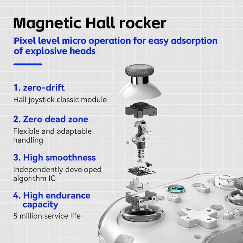 - Avanceret Hall-joystick og dobbelte udløsertaster: Hall-joystick-teknologi og dobbelte triggertaster, herunder mikrobevægelse og Hall-triggermuligheder, sikrer præcis kontrol og respons.