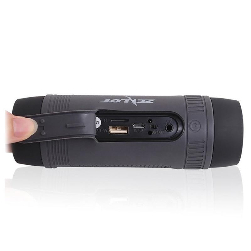 Den trådløse Zealot S1 højttaler er også udstyret med en håndfri mikrofon, der gør at du kan besvare opkald uden at skulle køre ind til siden. LED-lommelygten har tre forskellige lysindstillinger, og den understøtter også læsning af MicroSD/TF kort (ikke inkluderet), hvilket gør den meget praktisk og funktionel.