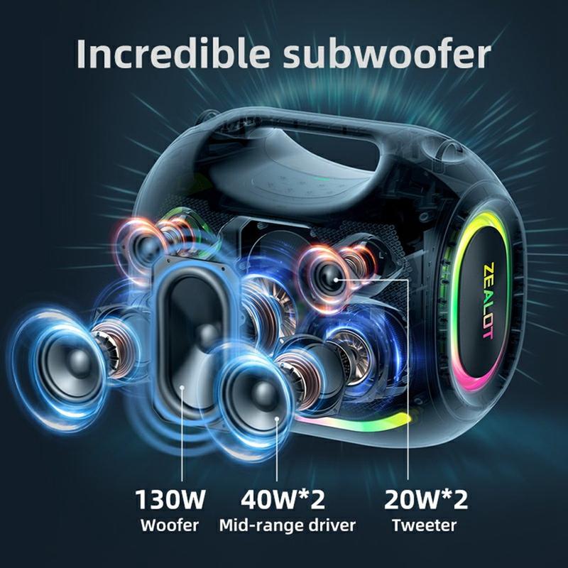 Zealot ZE21 250 W udendørs Bluetooth 5.3 festhøjttaler - 48 000 mAh batteri, TWS, RGB-lys, IPX6