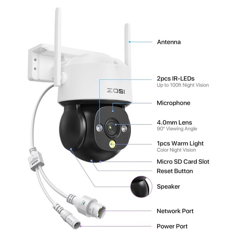 Sikr større områder dag og nat med ét kompakt, vejrbestandigt kamera. ZOSI C290SE kombinerer 4-megapixel-klarhed, fuld PTZ-kontrol, farvesyn om natten og indbygget tovejslyd - så du kan se, høre og tale hvor som helst.