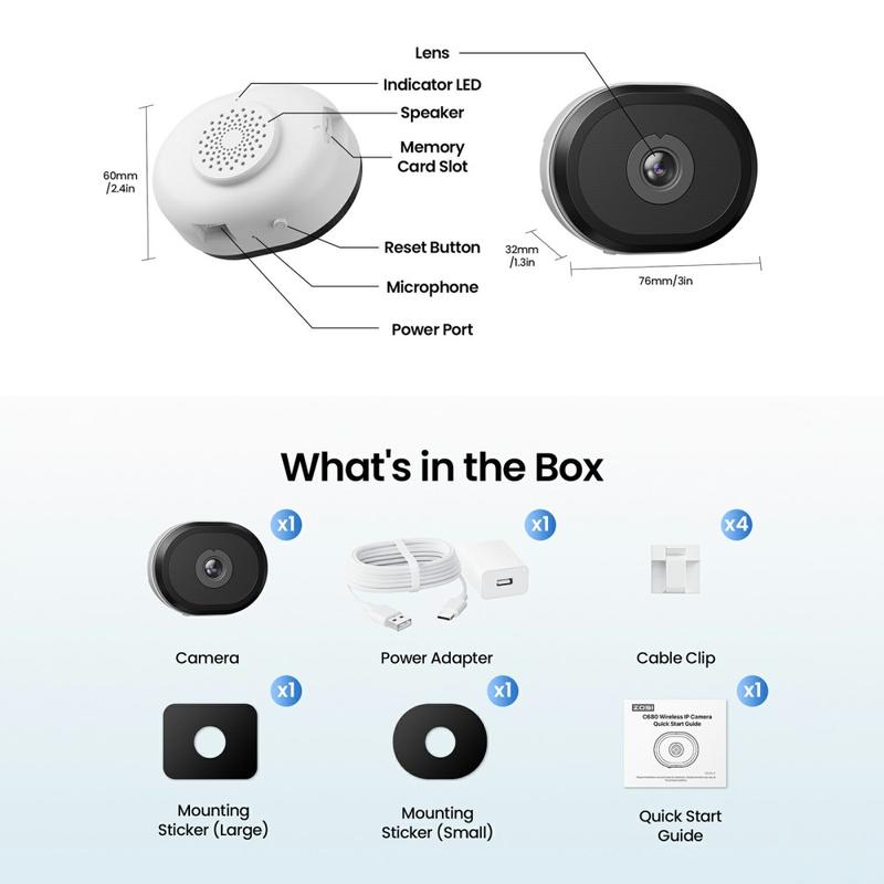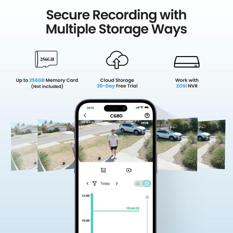 - Lagerplads: Understøtter microSD-kort op til 256 GB (medfølger ikke), cloud-lagring og ZOSI NVR-integration